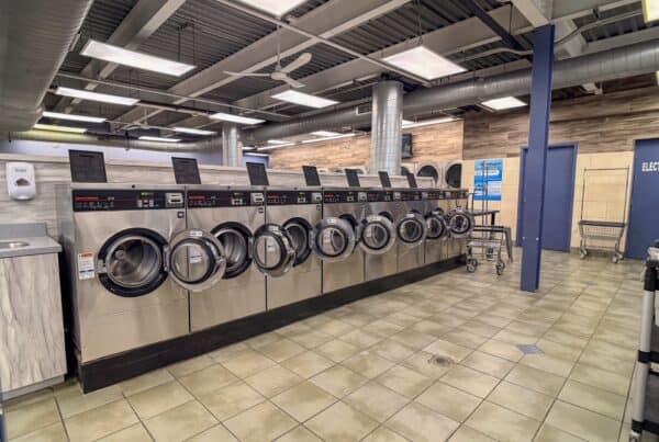 Spacious interior at Wash Smart Laundry, 9515 Grand Ave, Franklin Park, IL, featuring industrial-sized washers and convenient same day drop off laundry service.
