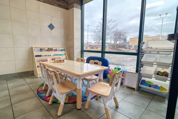The kids' zone at Wash Smart Laundry, located at 9515 Grand Ave, Franklin Park, IL, with play areas, books, and child-sized tables to keep young visitors entertained while parents handle their laundry.