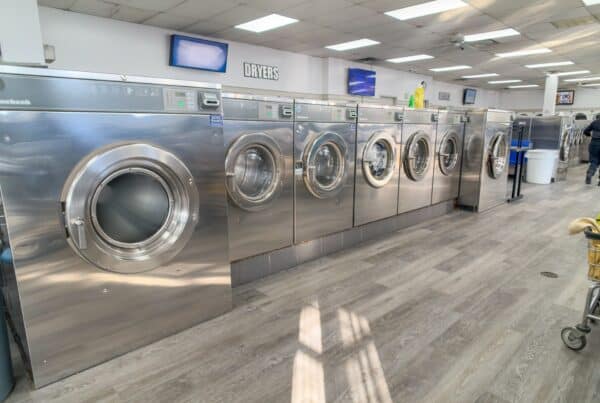 Industrial-size washers inside Wash Smart Lavanderia at 4646 S Kedzie Ave, offering some of the largest washers in Chicago for extra-large loads.